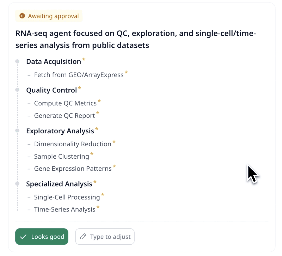 Validated agents can be shared across teams and reused as standardized workflows. This replaces one-off chat interactions with durable, reproducible SOPs, allowing labs to scale proven methodologies without rebuilding logic from scratch.