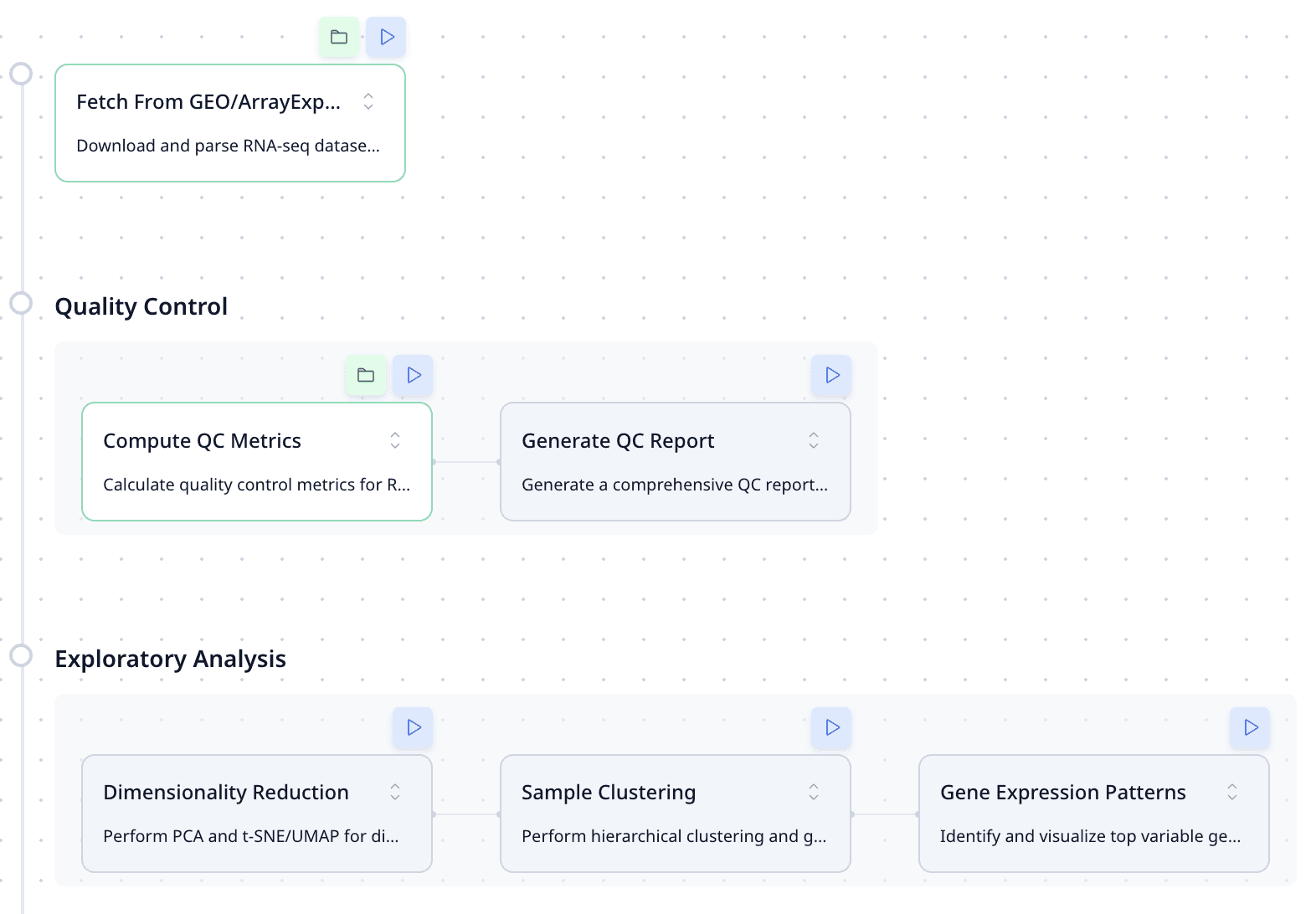 Scientific integrity requires more than just a final answer. The platform captures and surfaces data at every step, allowing users to review the final result or drill into step-level outputs to validate findings, support peer review, and extract supplemental data.