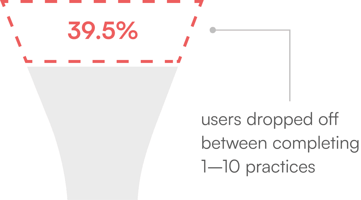 Despite having 800k+ users worldwide, picoCTF faced a significant engagement issue: 39.5% of users dropped off after solving only 1–10 practices.