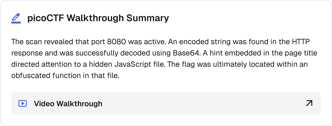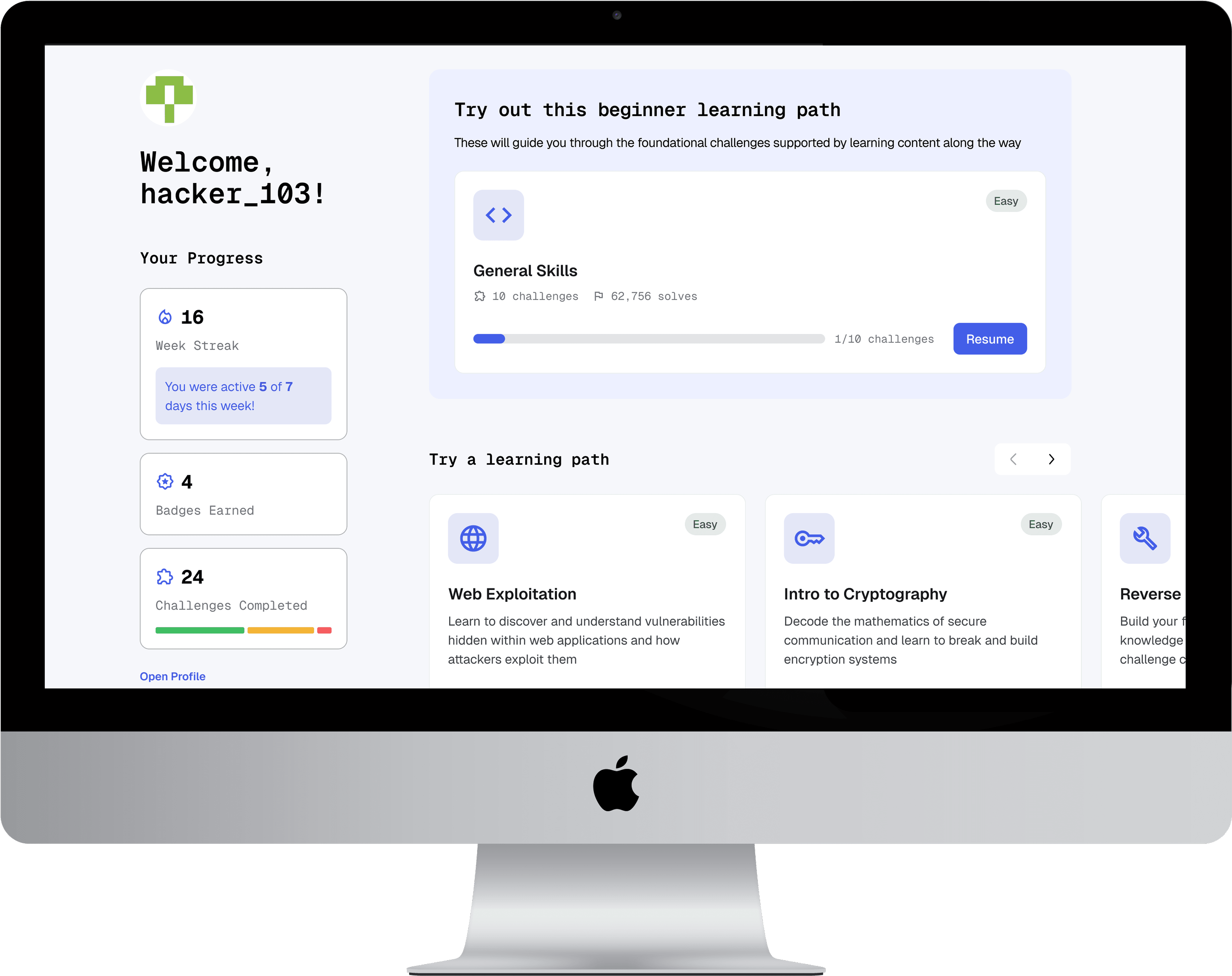 With over 800k users, picoCTF is a cybersecurity education platform teaching users how to solve Capture The Flag (CTF) through hands-on practice. As the lead product designer on this capstone project, I redesigned the platform to tackle beginner drop-off issues, introducing structured learning paths, gamified rewards, and an AI-powered reflection feature.