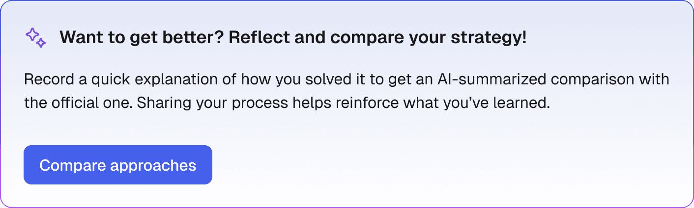 Beginners often solved practices without understanding why their solution worked. I designed an optional reflection feature where users can document their thought process, and AI compares it to expert strategies. This helps them internalize key concepts and develop problem-solving skills.